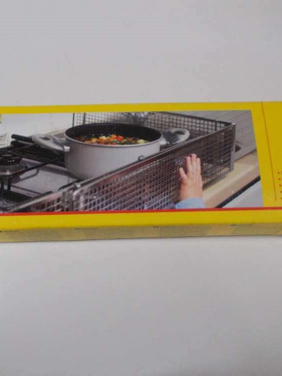 Barriera di sicurezza per i fornelli. Ogni bambino è curioso di vedere cosa c'è sopra i fornelli della cucina, e si espone quindi al grave rischio di rovesciarsi qualcosa bollente addosso. Questa barriera è studiata per proteggerlo, e per la tranquillità dei genitori. La si applica saldamente tramite le quattro apposite ventose oppure tramite la striscia metallica dotata di biadesivo. E' estraibile, e si addatta quindi praticamente a quasi tutte le dimensioni di gruppo fornelli. Si inserisce senza problemi nell'estetica della cucina.