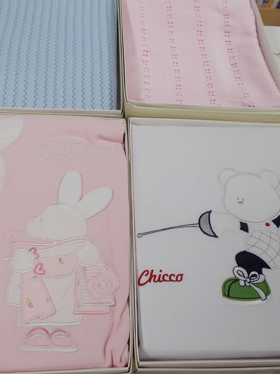 Copertine carrozzina chicco in cotone 100%, varie fantasie e colori con applicazioni per maschio e femmina.