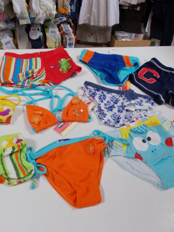 Costumi bimbi: intero, bikini, slip e boxer in varie misure da 3 mesi a 6 anni di vari colori e fantasie per bimbo ebimba.