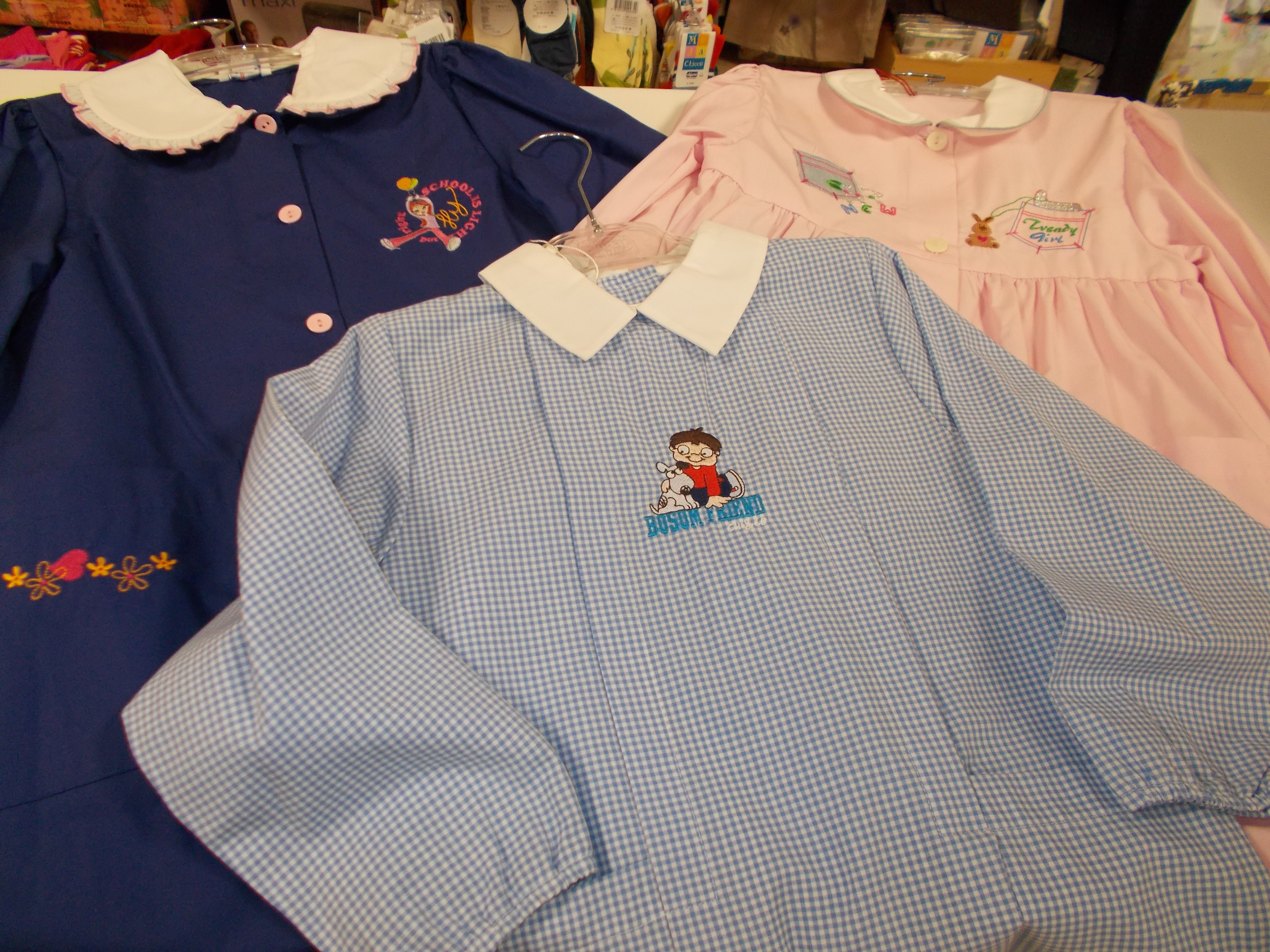 Grembiulini asilo rosa, azzurro e bianco e scuola bimba blu taglie 2anni, 5 anni e 6 anni con ricami e applicazioni tutto chicco.