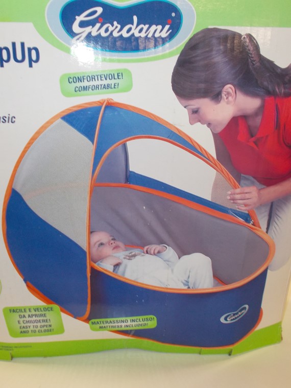 Lettino da viaggio giordani per bimbi da 0-6 mesi max. 9 kg facile e veloce da aprire e chiudere materassino incluso con borsa per trasporto, tendina zanzariera con cerniera, sicura ed efficace per la protezione del bambino nel momento del riposo.