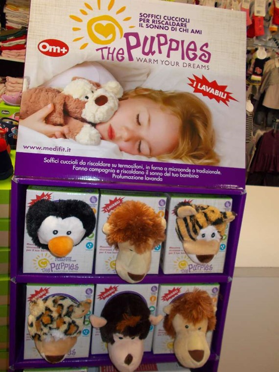 The Puppies sono peluches riscaldabili, profumati, resistenti al calore, e adatti all'utilizzo nel forno tradizionale e a microonde. L'essenza di lavanda, effusa dai peluches riscaldabili, dona benessere, ha un effetto calmante e riposante. calore e aroma vengono conservati a lungo e rilasciati in maniera graduale. Inoltre se vengono avvolti in un sacchetto di plastica e riposti nel freezer per una notte, sono utilissimi per rinfrescare il bambino in caso di febbre, contusioni e distorsioni.