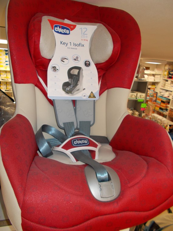 Seggiolino auto 9-18 kg key 1 isofix chicco colore rosso con inserti beige, poggiatesta regolabile cinture di sicurezza, 5 posizioni, posizionamento safe-system, connettori attacco isofix + 12 mesi.