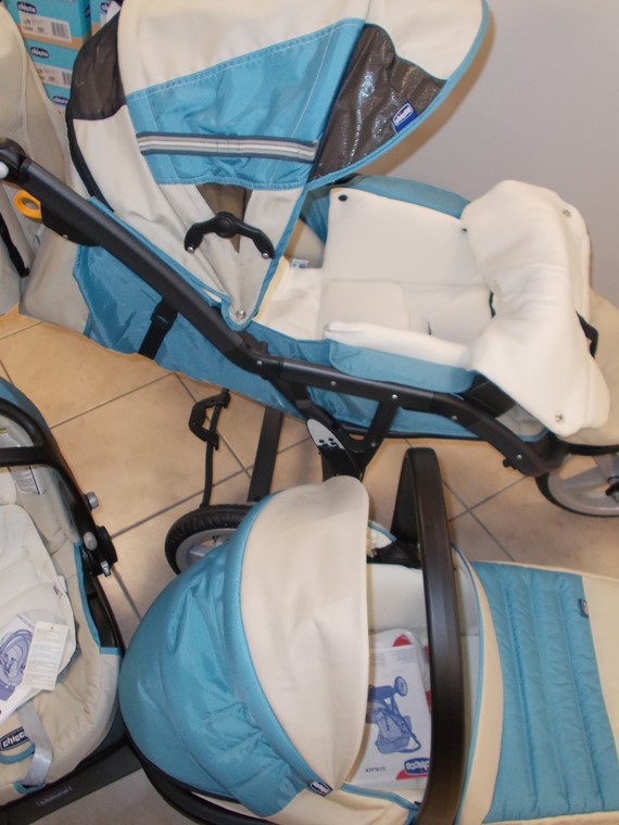 Trio chicco full optional completo di passeggino 3 ruote, navicella termica, poltroncina auto 0-9 kg. completa di base aggancio auto, zaino portatutto, sacco caldo coprigambe, cestello portaoggetti, mantellina parapioggia, capotta estate-inverno, ruota anteriore piroettante fissa, freno di rallentamento, freno di stazionamento, regolazione schienale, impugnatura regolabile in altezza, manicotto estraibile, kit car per aggancio cesta, colore beige con inserti jeans.