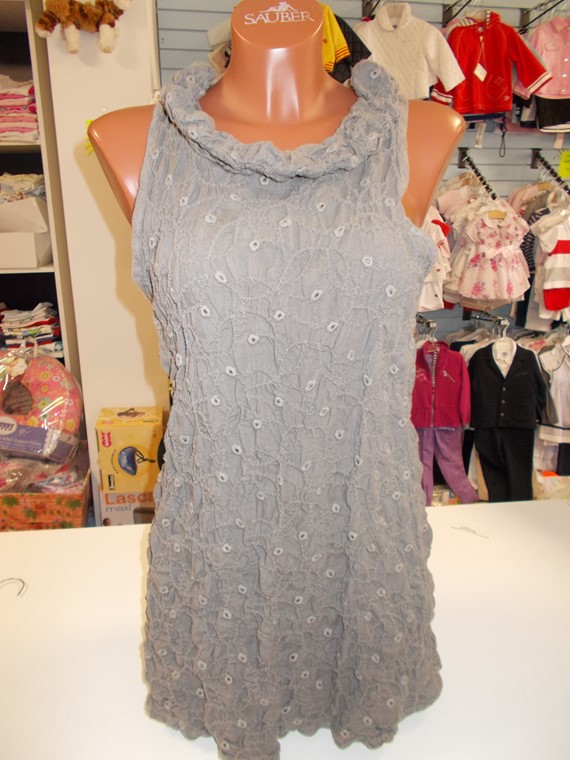 Canotta 100% lino lavorazione a sangallo, scollo a ciambella colore fango taglie m-l.