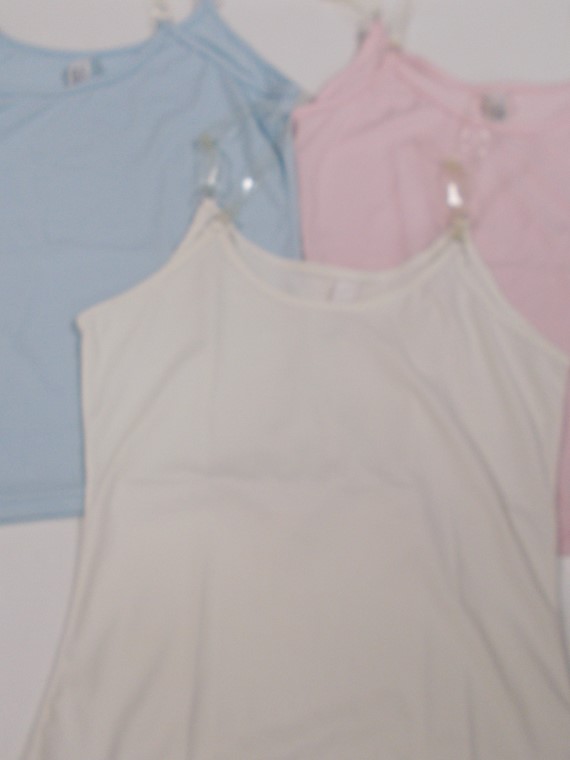 Canotte microfibra colorate, rosa, bianche, azzurre, spalline trasparenti varie misure.