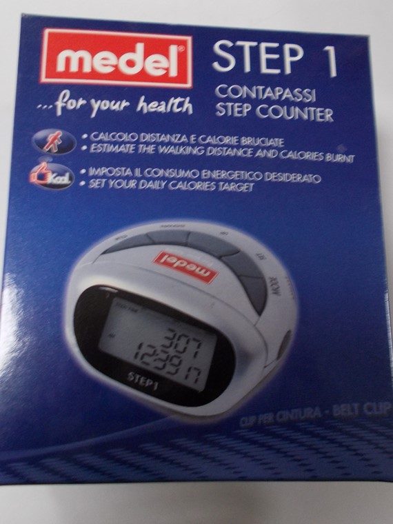 Medel step 1 è un pedometro in grado di calcolare le calorie bruciate, i passi e la distanza percorsa. Ti consente di impostare le calorie giornaliere da bruciare aggiornandoti costantemente sul relativo avanzamento, dotato di impostazione dei propri parametri personali con orologio, cronometro, clip per cintura e luce.
