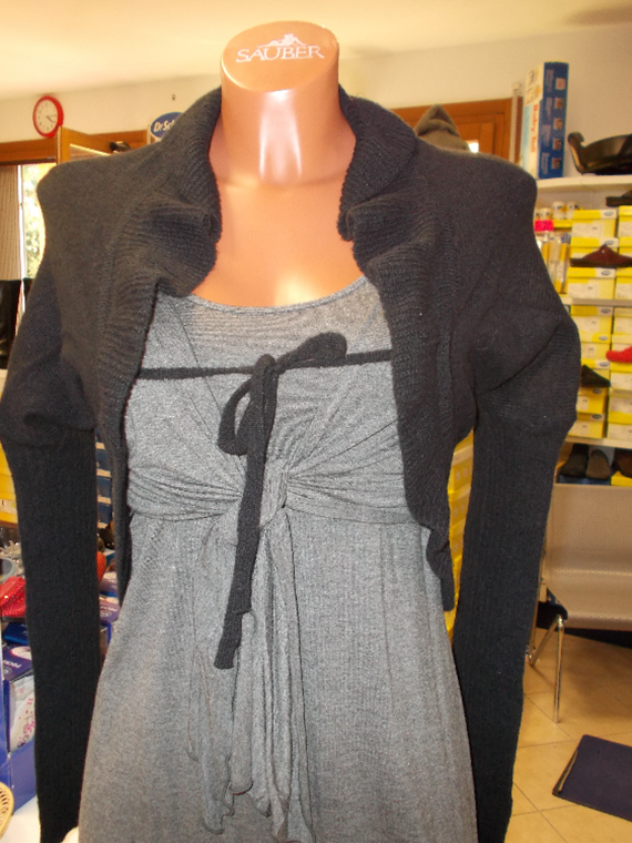 Coprispalle nero con volan al giro e laccetto sottoseno, composizione in morbido misto lana, taglia XS.