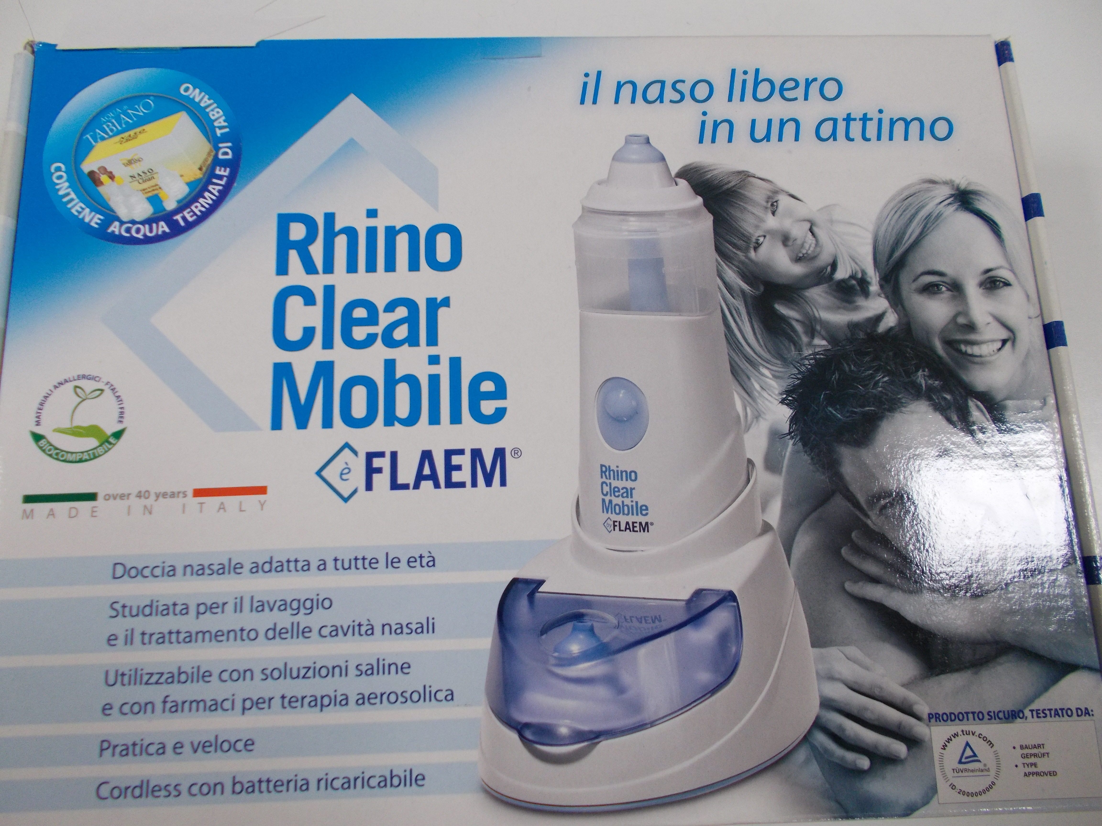 Doccia nasale Rhino Clear mobile Flaem, adatta a tutte le età, studiata per il lavaggio e il trattamento delle