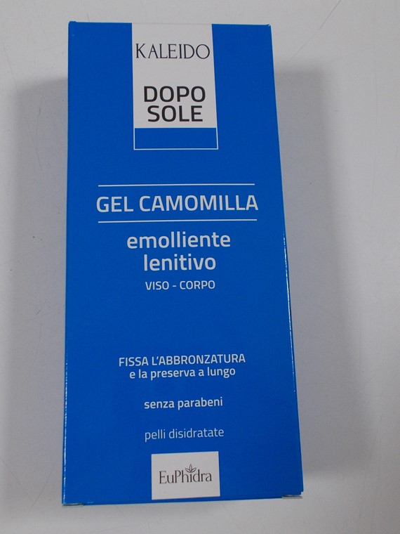 Gel camomilla doposole, emoliente e lenitivo, viso e corpo, fissa l'abbronzatura e la preserva a lungo, senza parabeni per pelli desidrate. Dona sollievo immediato alla pelle arrossata da una eccessiva esposizione al sole, attenuando la senzazione di secchezza cutanea, la sua innovativa formula in gel veicola principi funzionali naturali accuratamente selezionati per la loro azione lenitiva, calmante ed emoliente. Non grasso, facile e veloce nell'applicazione ripristina il livello di idratazione naturale dell'epidermide.