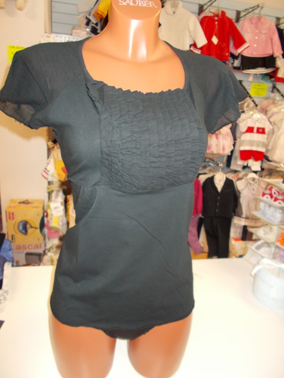 Maglia in cotone nero manica corta, applicazione rouche sul davanti taglia small.