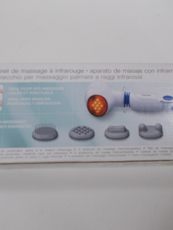 Apparecchio per massaggio palmare a raggi infrarossi, benefico massaggio vibrante, azione profonda grazie al calore a raggi infrarossi, dotato di 4 accessori per massaggio intercambiabili, testa massaggiante ruotabile di 180°, impugnatura con tripla regolazione. Ideale per massaggio mirato sui punti energetici con 3 livelli di funzionamento.