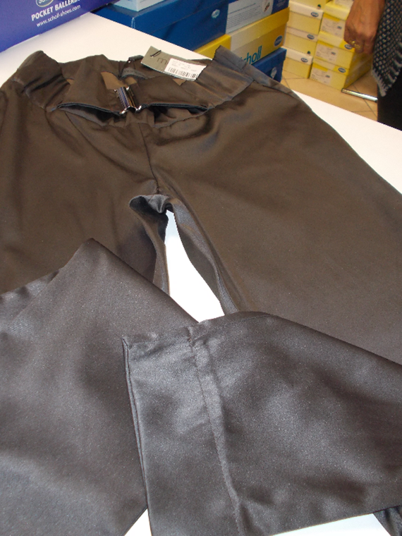 Pantalone lungo in raso di cotone 100% con cintura in vita, modello stretto a tubo, in colori nero e marrone.