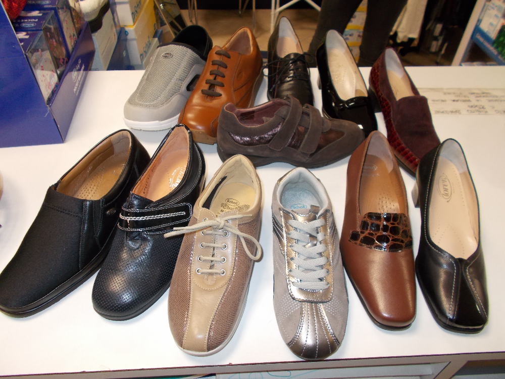 Scarpe, uomo-donna, Dr.Scholl e Loren fine serie in pelle ed elasticizzate, eleganti e sportive, di vari colori dal numero 35 al numero 45, materiali invernali e suole antisdrucciolo, plantari anatomici estraibili e con placche magnetiche per attivare la circolazione .