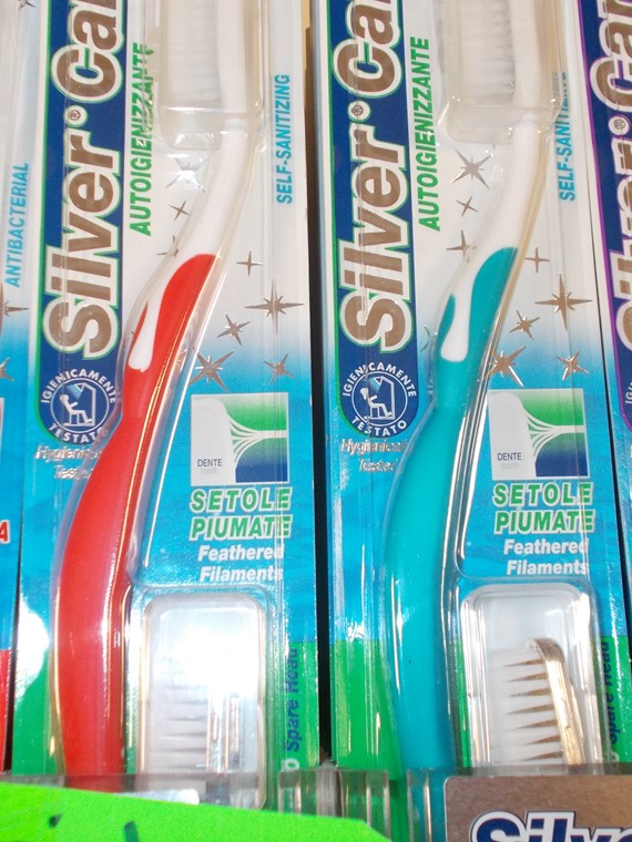 Spazzolini da denti Silvercare, in setole microfibra antibatterica, testina in argento puro munito di secondo ricambio, massima capacità di pulizia e migliore protezione delle gengive.