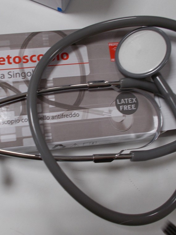 Stetoscopio singolo con anello antifreddo, leggero, maneggevole, economico, latex free, fornito in vari colori.